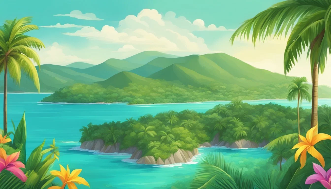Im Landesinneren finden sich dichte Regenwälder und malerische Wasserfälle. Das Klima ist ganzjährig warm und feucht, mit Temperaturen zwischen 25°C und 30°C. Die Regenzeit dauert von Mai bis Oktober.