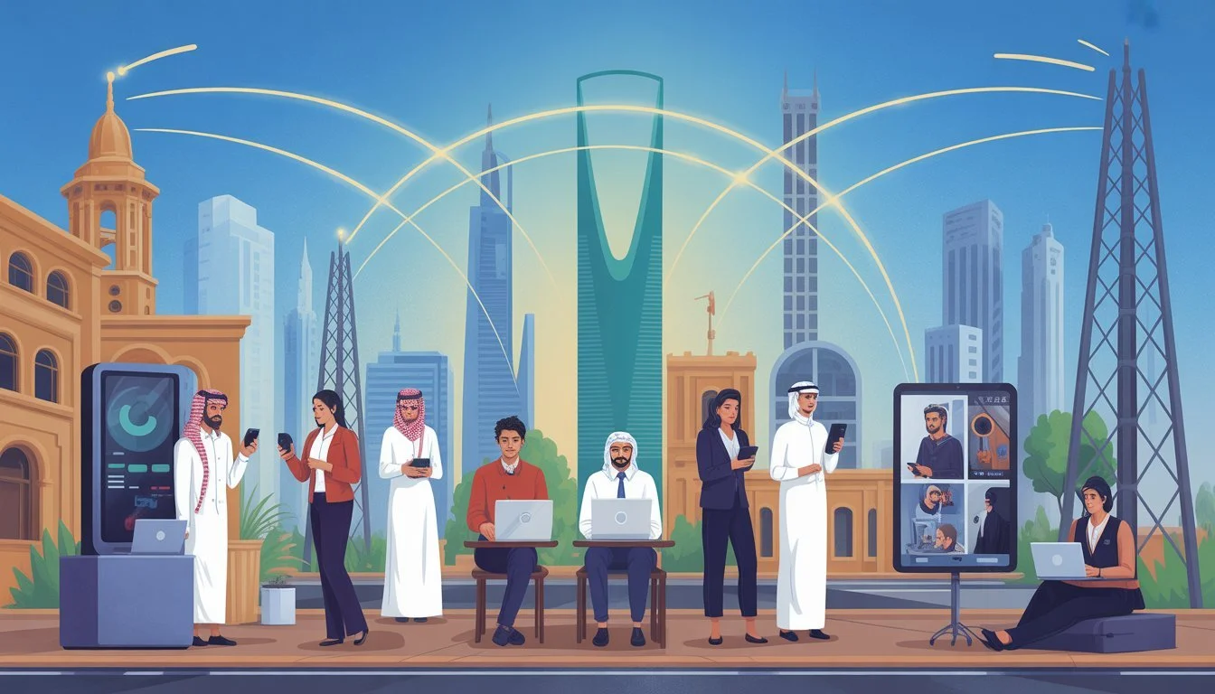 In Saudi-Arabien sind digitale Kommunikationswege weit entwickelt. Die Nutzung von Internet, Mobilfunk und digitalen Medien ist für viele Auswanderer Teil des Alltags und eng mit der lokalen Infrastruktur verbunden.