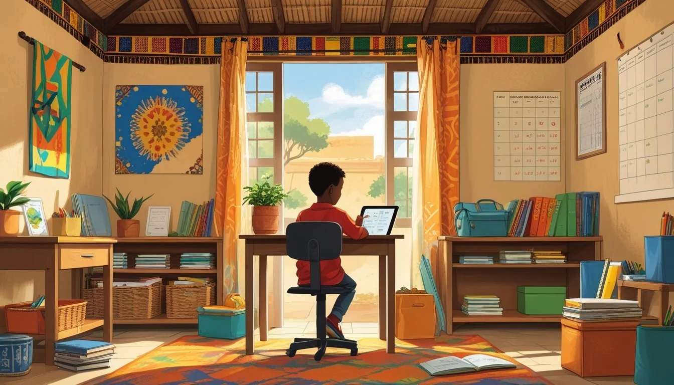 Ein erfolgreicher Schulalltag zu Hause in Mali benötigt Organisation und Anpassung an die neue Umgebung. Eine passende Lernumgebung und eine feste Tagesstruktur helfen Kindern, konzentriert zu bleiben.